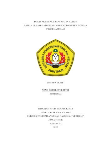 Fitri, Nana Roudlotul (2025) Pabrik Oleamida Dari Asam Oleat dan Urea Dengan Proses Amidasi. Undergraduate thesis, UPN Veteran Jawa Timur.