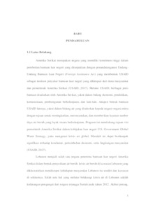 EFEKTIVITAS BANTUAN LUAR NEGERI AMERIKA SERIKAT DALAM PROGRAM LEBANON WATER PROJECT (LWP) UNTUK MENGATASI KRISIS AIR BERSIH DI LEBANON TAHUN 2015-2021