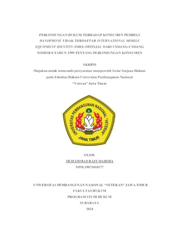 MARSHA, MUHAMMAD RAFI (2024) PERLINDUNGAN HUKUM TERHADAP KONSUMEN PEMBELI HANDPHONE TIDAK TERDAFTAR INTERNATIONAL MOBILE EQUIPMENT IDENTITY (IMEI) DITINJAU DARI UNDANG-UNDANG NOMOR 8 TAHUN 1999 TENTANG PERLlNDUNGAN KONSUMEN. Undergraduate thesis, Universitas Pembangunan Nasional "Veteran" Jawa Timur.