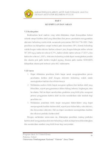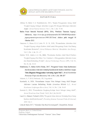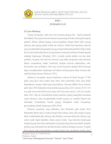 Raditya, Dendy Wahyu (2024) Karakterisasi Karbon Aktif Dari Tongkol Jagung Dengan Aktivator Belimbing Wuluh. Undergraduate thesis, UPN Veteran Jawa Timur.