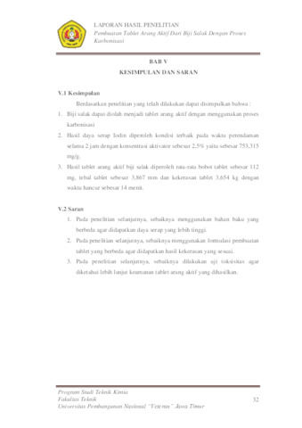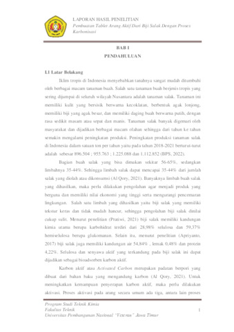 Sari, Nungki Mela (2024) Pembuatan Tablet Arang Aktif dari Biji Salak dengan Proses Karbonisasi. Undergraduate thesis, UPN Veteran Jawa Timur.