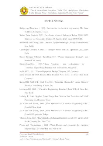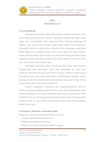 Atisadhu, Kinanthi (2024) Pabrik Aluminium Amonium Sulfat Dari Anhydrous Aluminium Sulfat Dengan Proses Kristalisasi Kapasitas 60.000 Ton/Tahun. Undergraduate thesis, UPN Veteran Jawa Timur.