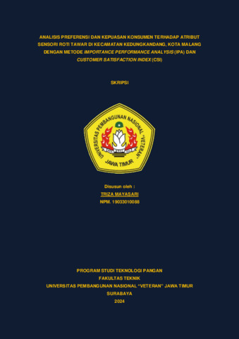 MAYASARI, TRIZA (2024) Analisis Preferensi dan Kepuasan Konsumen Terhadap Atribut Sensori Roti Tawar di Kecamatan Kedungkandang, Kota Malang Dengan Metode Importance Performance Analysis (IPA) dan Customer Satisfaction Index (CSI). Undergraduate thesis, UPN Veteran Jawa Timur.
