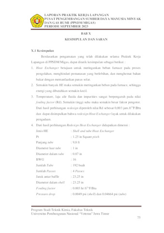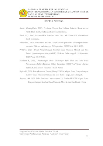 Fitri Rahmasari, Shofia Dwi LAPORAN PRAKTIK KERJA LAPANGAN REDESIGN HEAT EXCHANGER 01,02,03 SOLAR – CRUDE OIL PADA UNIT KILANG PUSAT PENGEMBANGAN SUMBER DAYA MANUSIA MINYAK DAN GAS BUMI (PPSDM MIGAS) CEPU. Project Report (Praktek Kerja Lapang dan Magang). UPN Veteran Jawa Timur. (Unpublished)