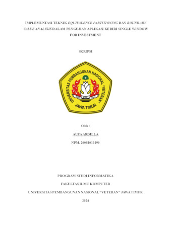 Ardilla, Aufa (2024) Implementasi Teknik Equivalence Partitioning Dan Boundary Value Analysis Dalam Pengujian Aplikasi Kediri Single Window For Investment. Undergraduate thesis, UPN Veteran Jawa Timur.