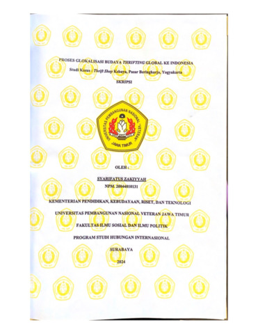 Zakiyyah, Syarifatus (2024) PROSES GLOKALISASI BUDAYA THRIFTING GLOBAL KE INDONESIA, Studi Kasus : Thrift Shop Kebaya, Pasar Beringharjo, Yogyakarta. Undergraduate thesis, UPN Veteran Jawa Timur.