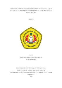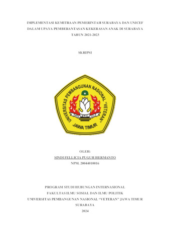 Hermanto, Sindi Fellicia Puguh (2024) Implementasi Kemitraan Pemerintah Surabaya dan UNICEF Dalam Upaya Pemberantasan Kekerasan Anak di Surabaya Tahun 2021-2023. Undergraduate thesis, UPN Veteran Jawa Timur.