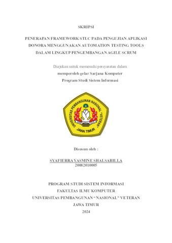 Shalsabilla, Syafierra Yasmine (2024) PENERAPAN FRAMEWORK STLC PADA PENGUJIAN APLIKASI DONORA MENGGUNAKAN AUTOMATION TESTING TOOLS DALAM LINGKUP PENGEMBANGAN AGILE SCRUM. Undergraduate thesis, UPN Veteran Jawa Timur.