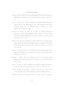Kolaborasi merupakan kunci utama dalam pengembangan pariwisata, termasuk di Kota Surabaya yang memiliki potensi wisata air, seperti Wisata Perahu Kalimas. Destinasi wisata ini menawarkan pengalaman unik dengan rute melintasi berbagai spot objek wisata serta bangunan bersejarah. Namun, pengembangan destinasi ini membutuhkan dukungan berbagai pihak sehingga Pemerintah Kota Surabaya berupaya bersinergi dengan para pemangku kepentingan untuk mendorong kolaborasi. Dengan demikian, collaborative governance muncul sebagai tatanan yang relevan untuk memperkuat pengembangan Wisata Perahu Kalimas pada penelitian ini. Adapun tujuan penelitian ini, yaitu untuk mendeskripsikan proses collaborative governance dalam pengembangan Wisata Perahu Kalimas di Kota Surabaya. Teori yang digunakan pada penelitian ini adalah collaborative governance menurut Emerson, Nabatchi, dan Balogh (2012) yang dikutip oleh Astuti et al. (2020), yakni dinamika kolaborasi, tindakan kolaborasi, serta dampak dan adaptasi dari proses kolaborasi. Penelitian ini menggunakan metode penelitian deskriptif dengan pendekatan kualitatif. Teknik pengumpulan data, yaitu observasi, pengumpulan dokumen, dan wawancara. Uji keabsahan data dengan cara teknik triangulasi. Hasil penelitian ini menunjukkan tiga fokus penelitian yang mana memiliki hasil variatif, yaitu : 1) Dinamika kolaborasi telah berjalan dengan baik walaupun masih ada kekurangan dalam hal kepercayaan dan keterbatasan pada sumber daya anggaran dan fasilitas 2) Tindakan kolaborasi yang dilakukan dengan menyelenggarakan event bersama komunitas telah berjalan dengan baik 3) Dampak dan adaptasi telah berjalan dengan baik dan dirasakan pengaruh positif dari masing-masing aktor yang terlibat. Dengan demikian, penelitian ini dapat disimpulkan bahwa collaborative governance dalam pengembangan Wisata Perahu Kalimas yang dilakukan oleh para aktor telah berjalan dengan baik.