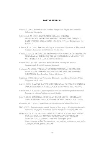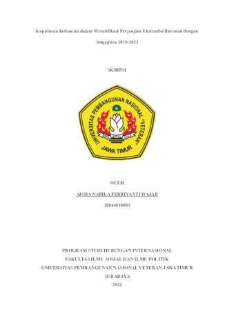 Hajar, Aisha Nabila Febriyanti (2024) Keputusan Indonesia dalam Meratifikasi Perjanjian Ekstradisi Buronan dengan Singapura 2019-2022. Undergraduate thesis, UPN Veteran Jawa Timur.