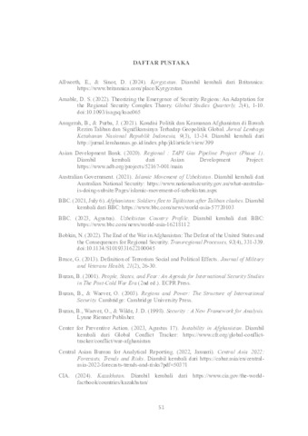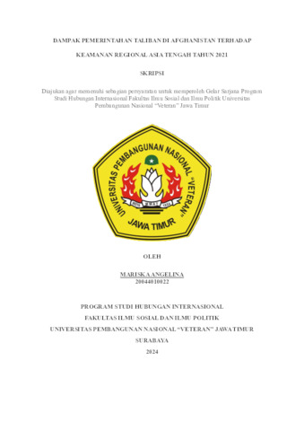 Angelina, Mariska (2024) DAMPAK PEMERINTAHAN TALIBAN DI AFGHANISTAN TERHADAP KEAMANAN REGIONAL ASIA TENGAH TAHUN 2021. Undergraduate thesis, UPN Veteran Jawa Timur.