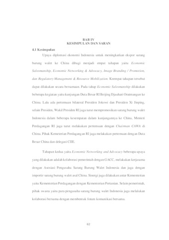 Sarang burung walet adalah salah satu komoditas unggulan Indonesia dalam perdagangan internasional karena jumlah produksinya di Indonesia yang sangat besar. Pada periode 2021 Indonesia menghasilkan sekitar 80% dari kapasitas produksi sarang burung walet dunia. Meskipun memiliki jumlah produksi sarang burung walet sangat besar, konsumsi domestik sarang burung walet di Indonesia hanya sekitar 5% saja dan sisanya sebesar 95% diekspor, sedangkan China adalah importir komoditas SBW terbesar di dunia dengan permintaan domestik di China yang sangat tinggi sehingga menjadikan China sebagai tujuan ekspor sarang burung walet nomor satu Indonesia. Meskipun demikian, terdapat hambatan-hambatan yang terjadi terkait dengan ekspor produk SBW ke China, diantaranya adalah persyaratan dan perizinan ekspor SBW ke China yang diberlakukan oleh GACC sangatlah ketat sehingga sangat menyulitkan para eksportir SBW dalam negeri. Untuk itu Indonesia melakukan diplomasi ekonomi dalam upaya untuk mendorong ekspor SBW ke China karena harga ekspor produk SBW ke China sangatlah tinggi jika dibandingkan dengan ekspor ke negara lain seperti Hongkong. Terdapat empat tahapan diplomasi ekonomi yang dilakukan Indonesia, diantaranya adalah economic salesmanship, economic networking and advocacy, image branding/promotion, dan regulatory management and resource mobilization. Keempat tahapan tersebut dilakukan secara bersamaan dan memiliki peran masing�masing dalam upaya diplomasi ekonomi Indonesia.