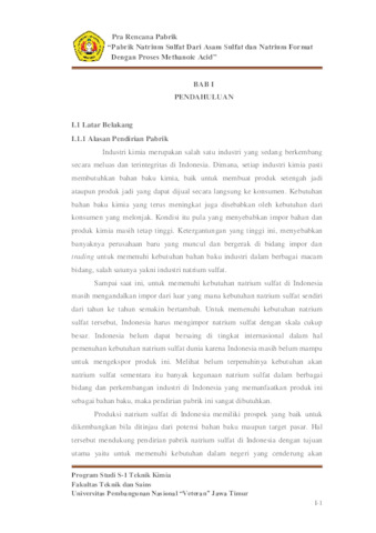 Nathania, Graciella Yerrica (2024) Pra Rencana Pabrik Natrium Sulfat Dari Asam Sulfat Dan Natrium Format Dengan Proses Methanoic Acid. Undergraduate thesis, UPN Veteran Jawa Timur.