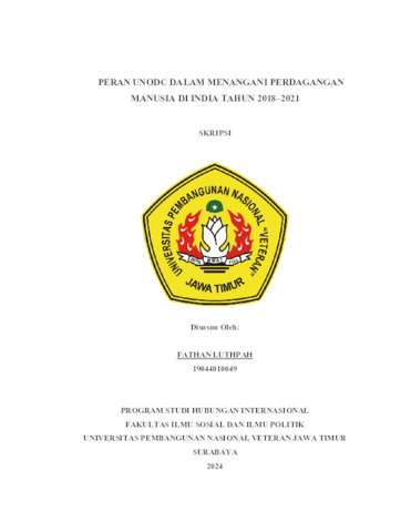 Luthpah, Fathan (2024) PERAN UNODC DALAM MENANGANI PERDAGANGAN MANUSIA DI INDIA TAHUN 2018-2021. Undergraduate thesis, UPN "Veteran" Jawa Timur.