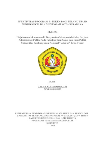 Dindaputri, Zalwa Navy (2024) Efektivitas Program E-PEKEN Bagi Usaha Mikro Kecil dan Menengah Kota Surabaya. Undergraduate thesis, UPN Veteran Jawa Timur.