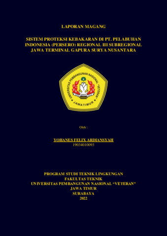 Yohanes, Felix Ardiansyah (2023) SISTEM PROTEKSI KEBAKARAN DI PT.PELABUHAN INDONESIA (PERSERO) REGIONAL III SUBREGIONAL JAWA TERMINAL GAPURA SURYA NUSANTARA. Project Report (Praktek Kerja Lapang dan Magang). UPN Veteran Jawa Timur. (Unpublished)