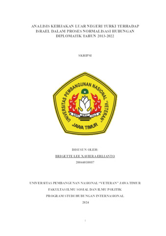 Erlianto, Brigette Lee Xaviera (2024) Analisis Kebijakan Turki Terhadap Israel Dalam Proses Normalisasi Hubungan Diplomatik 2013-2023. Undergraduate thesis, UPN Veteran Jawa Timur.