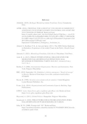 Puspitasari, Kharisma (2024) PERAN WORLD HEALTH ORGANIZATION (WHO) DALAM MENANGANI WABAH KOLERA DI ZIMBABWE TAHUN 2018-2019. Undergraduate thesis, Universitas Pembangunan Nasional Veteran Jawa Timur.