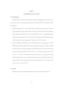 In implementing construction projects, planning material supplies well is very important to ensure the smoothness and efficiency of work. Smoothness includes comprehensive planning including ensuring materials are met according to plan, while efficiency aims to reduce time and costs. In this research, material planning will be carried out using the Material Requirement planning (MRP) method, using 3 different lot sizing techniques, namely Lot for Lot (LFL), Economic Order Quantity (EOQ), and Period Order Quantity (POQ). The MRP method is used to calculate the amount of material needed accurately, so as to avoid excessive material inventory levels. After carrying out the MRP method, the most optimum order quantity and the total costs required for each lot measurement technique are obtained. The results of this research show that the LFL technique produces the optimum number of orders for gelam wood, plywood, reinforcement, bendrat wire and ready mix concrete materials. Meanwhile, the materials for lubricating oil, meranti wood, randu wood, and nails are more optimal if you order using the POQ technique.