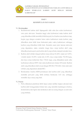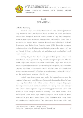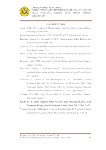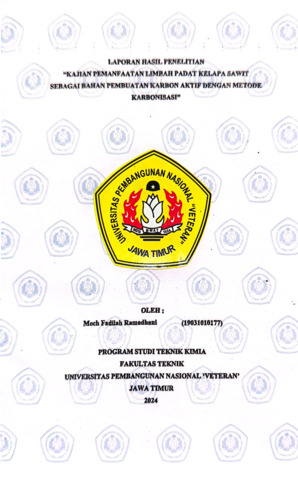 Ramadhani, Moch Fadilah (2024) Kajian Pemanfaatan Limbah Padat Kelapa Sawit Sebagai Bahan Pembuatan Karbon Aktif dengan Metode Karbonisasi. Undergraduate thesis, UPN Veteran Jawa Timur.