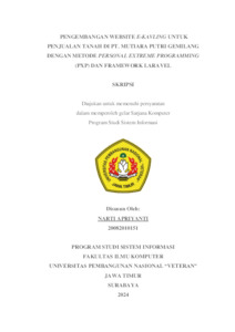 Apriyanti, Narti (2024) PENGEMBANGAN WEBSITE E-KAVLING UNTUK PENJUALAN TANAH DI PT. MUTIARA PUTRI GEMILANG DENGAN METODE PERSONAL EXTREME PROGRAMMING (PXP) DAN FRAMEWORK LARAVEL. Undergraduate thesis, UPN "Veteran" Jawa Timur.