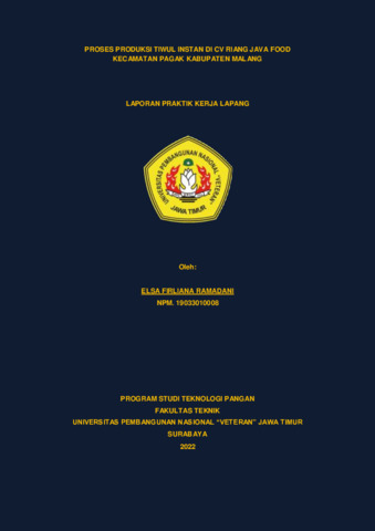RAMADANI, ELSA FIRLIANA Proses Produksi Tiwul Instan di CV Riang Java Food Kecamatan Pagak Kabupaten Malang. Project Report (Praktek Kerja Lapang dan Magang). UPN Veteran Jawa Timur. (Unpublished)