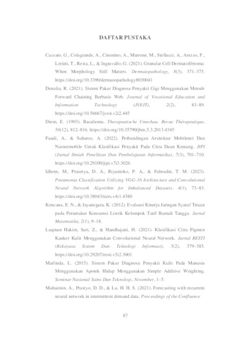 Faradila, Putri Wanda Yasmine (2024) KLASIFIKASI PENYAKIT KULIT MENGGUNAKAN ALGORITMA CONVOLUTIONAL NEURAL NETWORK ARSITEKTUR MOBILENET. Undergraduate thesis, UPN VETERAN JAWA TIMUR.