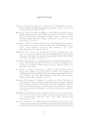 The aim of this research was to determine the influence of Total Asset Turnover, Debt to Equity Ratio, and Current Ratio on Return On Assets in food and beverage sector manufacturing companies listed on the IDX for the 2020-2022 period. This research was conducted using a quantitative approach with secondary data, namely financial reports of food and beverage manufacturing companies listed on the IDX for the 2020-2022 period. The sample in this study was 19 companies and was analyzed using multiple linear regression analysis. The results of the research show that total asset turnover partially has a positive and significant effect on return on assets, debt to equity ratio partially has a negative and significant effect on return on assets, current ratio partially has a negative and insignificant effect on return on assets, and together – Total asset turnover, debt to equity ratio, and current ratio simultaneously influence return on assets in food and beverage sector manufacturing companies on the IDX for the 2020-2022 period.