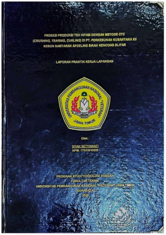 Setyawati, Dyah Proses Produksi Teh Hitam dengan Metode CTC (Crushing, Tearing, Curling) di PT. Perkebunan Nusantara XII Kebun Bantaran Afdeling Sirah Kencong Blitar. Project Report (Praktek Kerja Lapang dan Magang). UPN "VETERAN" JAWA TMUR. (Unpublished)