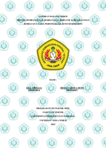 Aprillia, Eka (2023) LAPORAN MAGANG MBKM PROYEK PEMBANGUNAN JEMBATAN ALTERNATIF & PENGGANTIAN JEMBATAN UTAMA PERNINGKLOJI JETIS MOJOKERTO. Project Report (Praktek Kerja Lapang dan Magang). UPN Veteran Jawa Timur. (Unpublished)