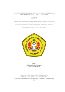Prakasa, Wahyu Maulana (2024) ANALISIS TERHADAP KEBIJAKAN LUAR NEGERI OPERATION PEACE SPRING TURKI PADA TAHUN 2019. Undergraduate thesis, UPN Veteran Jawa Timur.