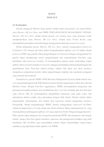 Independent Learning Freedom Campus Or Merdeka Belajar Kampus Merdeka (MBKM) is an innovative program from the Ministry of Education, Culture, Research, and Technology aimed at improving the quality of education and providing students the freedom to gain learning experiences outside their formal study programs. This program is designed to develop students' skills and competencies through various schemes, such as internships, research projects, student exchanges, and other learning activities relevant to the current needs of the workforce and industry. One implementation of the MBKM program is the independent internship conducted by students at Monster Group, which involves developing a web landing page for the AR Live Show and the TOGI Resources Management System (TRMS). This report outlines the process and results of the independent internship where students enhanced their abilities in the use of information technology, project management, and data analysis. These activities not only provide practical experience in developing real-world systems and applications but also train students in collaboration, problem-solving, and adaptation in a dynamic work environment. This research demonstrates that through internships at Monster Group, students can apply the theoretical knowledge acquired in the classroom to practical situations while gaining direct insights into the challenges and needs of the information technology industry
