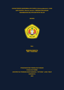RAEATYA, MONICHA (2024) Karakteristik Marshmallow Carica (Carica pubescens L.) dan Sari Wortel (Daucus carrota L.) dengan Perlakuan Penambahan Gelatin dan Putih Telur. Undergraduate thesis, UPN Veteran Jawa Timur.