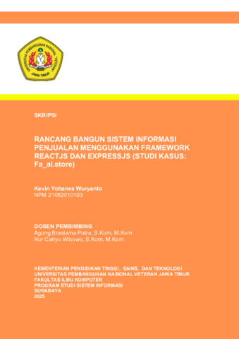 Wuryanto, Kevin Yohanes (2025) Rancang Bangun Sistem Informasi Penjualan Menggunakan Framework ReactJS Dan ExpressJS (Studi Kasus: Fa_al.store). Undergraduate thesis, UPN Veteran Jawa Timur.