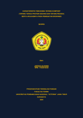 ALIVIANA, JUSTIKA (2024) Karakteristik Fisikokimia Tepung Komposit (Tepung Terigu Protein Sedang Dan Tepung Pedada) Serta Aplikasinya Pada Pembuatan Brownies. Undergraduate thesis, UPN "Veteran" Jawa Timur.