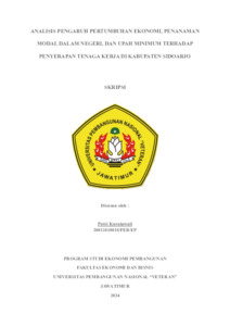 Kurniawati, Putri (2024) Analisis Pengaruh Pertumbuhan Ekonomi, Penanaman Modal Dalam Negeri, dan Upah Minimum terhadap Penyerapan Tenaga Kerja di Kabupaten Sidoarjo. Undergraduate thesis, UPN Veteran Jawa Timur.