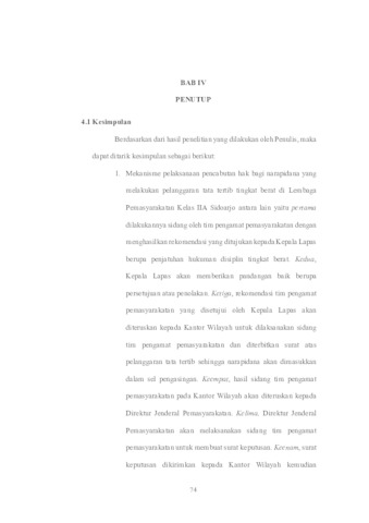 Qhotrunnada, Allisa (2024) PELAKSANAAN PENCABUTAN HAK BAGI NARAPIDANA YANG MELAKUKAN PELANGGARAN TATA TERTIB TINGKAT BERAT (Studi di Lembaga Pemasyarakatan Kelas IIA Sidoarjo). Undergraduate thesis, Universitas Pembangunan Nasional “Veteran” Jawa Timur.