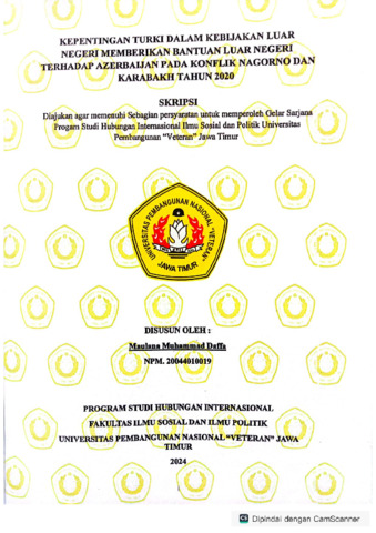Daffa, Maulana Muhammad (2024) Kepentingan Turki dalam Kebijakan Luar Negeri Memberikan Bantuan Luar Negeri Terhadap Azerbaijan Pada Konflik Nagorno dan Karabakh Tahun 2020. Undergraduate thesis, UPN VETERAN JAWA TIMUR.