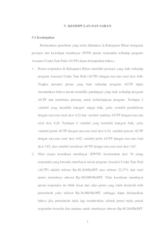 ANALISIS KESEDIAAN MEMBAYAR (WILLINGNESS TO PAY) PETANI TERHADAP PROGRAM ASURANSI USAHA TANI PADI (AUTP) DI KABUPATEN BLITAR