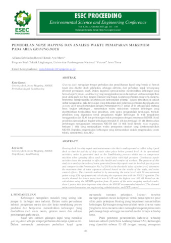 Pemodelan Noise Mapping Dan Analisis Waktu Pemaparan Maksimum Pada Area Graving Dock.