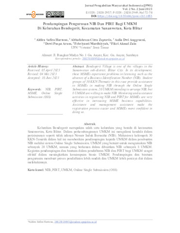Kata kunci: NIB, PIRT, UMKM, Online Single Submission (OSS)