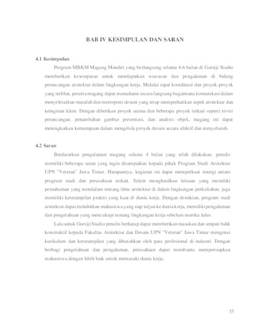 Hanafi, Muhammad Hasan (2024) LAPORAN MAGANG MANDIRI MERDEKA BELAJAR KAMPUS MERDEKA (MBKM) Bidang: Perancangan GURSIJI STUDIO PERENCANAAN GEDUNG PENGHUBUNG RSIS A. YANI SURABAYA. Project Report (Praktek Kerja Lapang dan Magang). UPN Veteran Jawa Timur, UPN Veteran Jawa Timur.