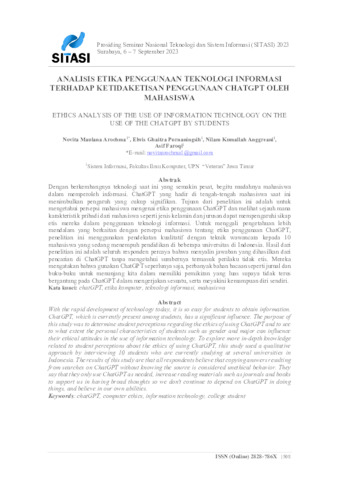 Kata kunci: chatGPT, etika komputer, teknologi informasi,