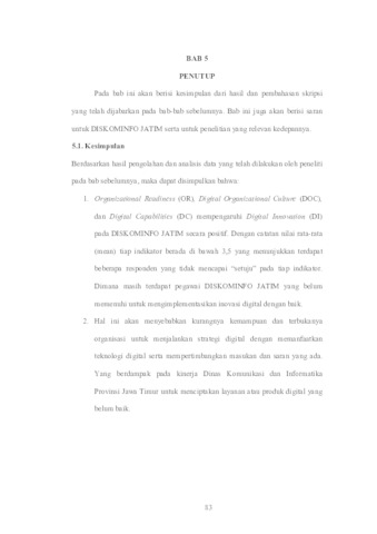ANALISIS PENGARUH ORGANIZATIONAL READINESS, DIGITAL ORGANIZATIONAL CULTURE, DAN DIGITAL CAPABILITIES TERHADAP IMPLEMENTASI DIGITAL INNOVATION DISKOMINFO JATIM