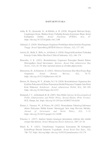ABSTRACT This research aims to determine the institutional transformation process at the Bojonegoro Regency Food Security and Agriculture Service, which is a new regional apparatus organization that was formed through a merger/merger process based on Bojonegoro Regent Regulation No. 85 of 2021. The Bojonegoro Regency Government is trying to streamline the main duties of the two agencies by combine/merger to create an agile organizational structure. Through the merger process, of course there were many changes in function and structure. This change in structure and function is the background for the need for scientific research regarding organizational changes which previously merged two different OPDs to form one new OPD. The method used is descriptive qualitative research with a case study approach. The results of the research found that the Bojonegoro Regency Food and Agriculture Security Service has carried out organizational transformation through strengthening the vision and mission, changing the organizational structure, improving public services through online applications and websites, building partners with other parties and implementing a reward and punishment system for employees. Keywords: Merger, Regional apparatus organization, Transformation.