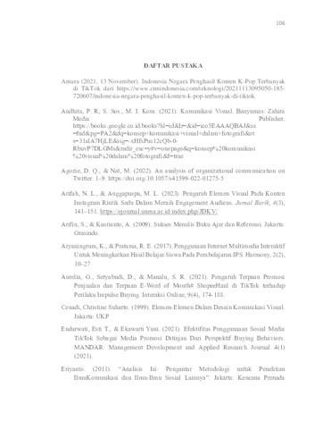 Akhsani, Atha Raihanah Fairuz (2024) Elemen Komunikasi Visual Dan Message Appeals Pada Konten Video TikTok (Studi Analisis Isi Kuantitatif Deskriptif Akun Tiktok @ebsfmdaebakclub). Undergraduate thesis, UPN Veteran Jawa Timur.