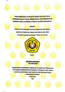 HAYA SAFIA, BALQISTA (2024) IMPLEMENTASI APLIKASI E-PEKEN DALAM UPAYA PEMBERDAYAAN USAHA MIKRO KECIL DAN MENENGAH (UMKM) PASCA PANDEMI COVID-19 DI KOTA SURABAYA. Undergraduate thesis, UPN "Veteran" Jawa Timur.