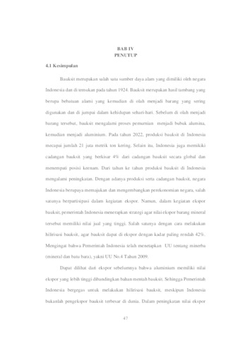 Mashita, Andini Cevia (2024) ANALISIS STRATEGI PENINGKATAN NILAI EKSPOR BAUKSIT MELALUI PROSES HULU KE HILIR DI INDONESIA TAHUN 2020-2023. Undergraduate thesis, UPN Veteran Jawa Timur.