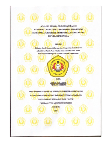Azisah, Afifah Nur (2024) Analisis Budaya Organisasi Dalam Meningkatkan Kinerja Pegawai di Biro Humas Sekretariat Jenderal Kementerian Pertahanan Republik Indonesia. Undergraduate thesis, UPN "Veteran" Jawa Timur.