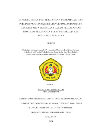 Anggun, Tri Mawardani (2024) Kinerja Dinas Pemberdayaan Perempuan dan Perlindungan Anak serta Pengendalian Penduduk dan Keluarga Berencana dalam Pelaksanaan Program Pelayanan Pusat Pembelajaran Keluarga Surabaya. Diploma thesis, UPN VETERAN JATIM.